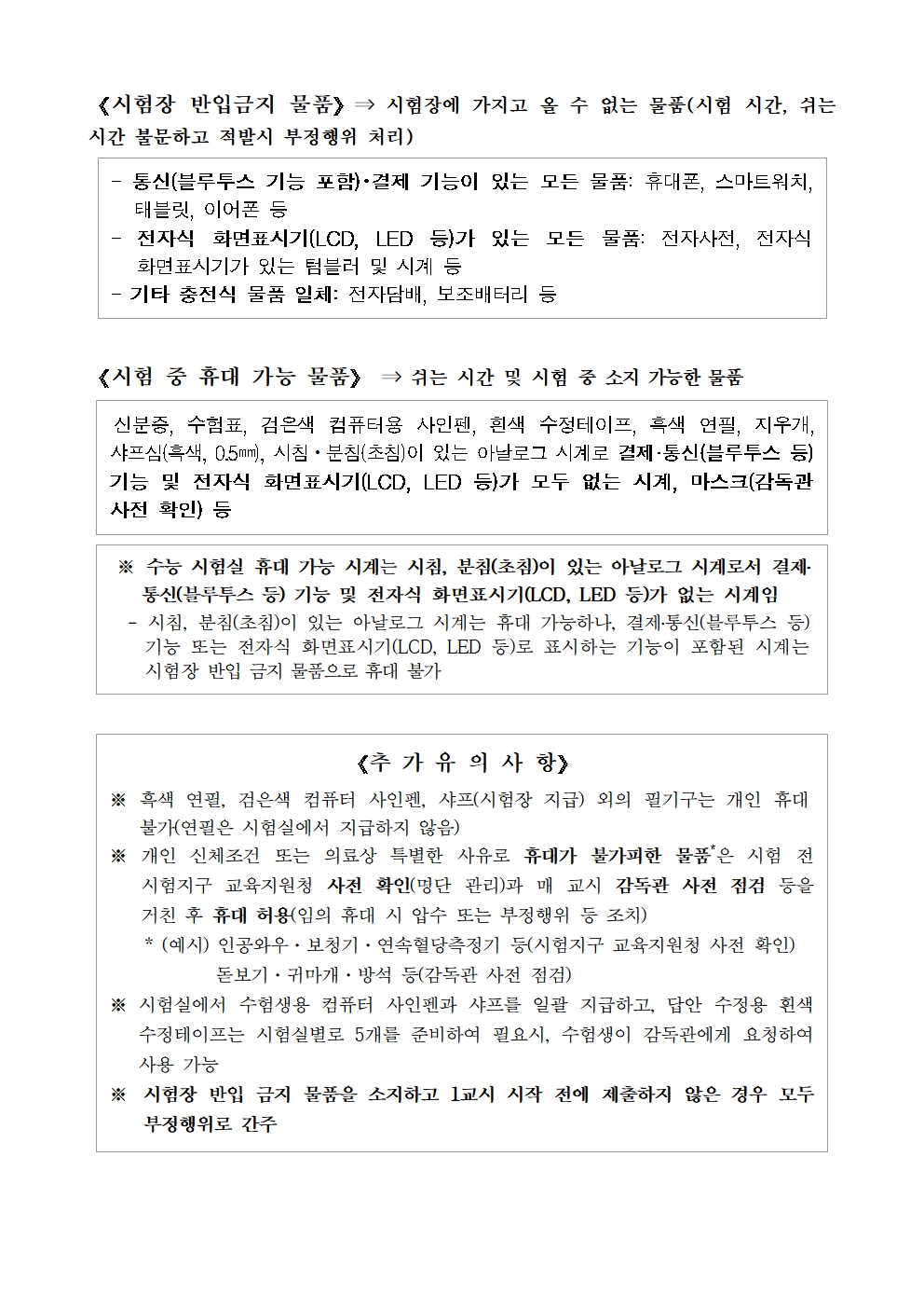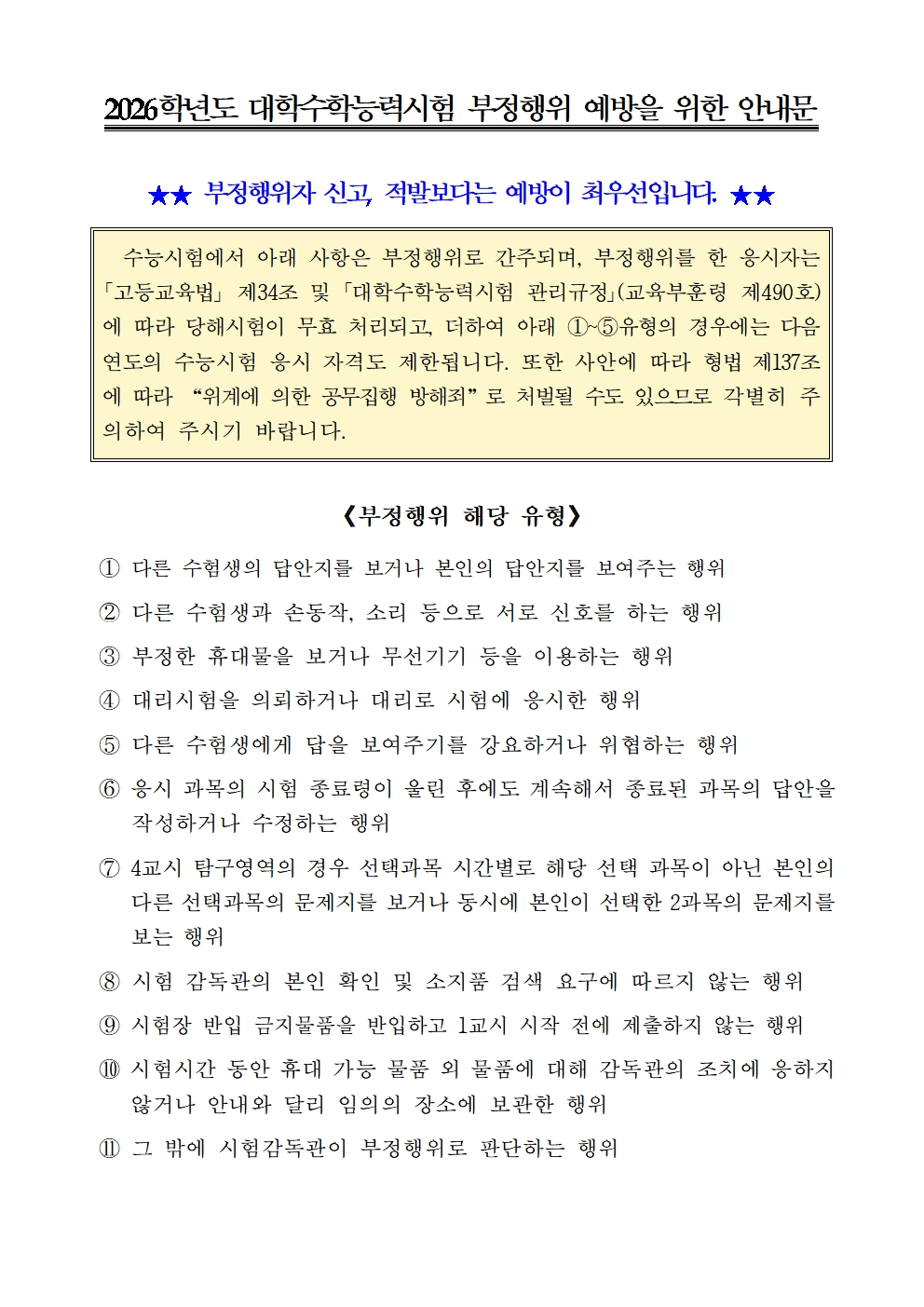 [안내] 2026학년도 대학수학능력시험 부정행위 유형 및 신고센터 안내