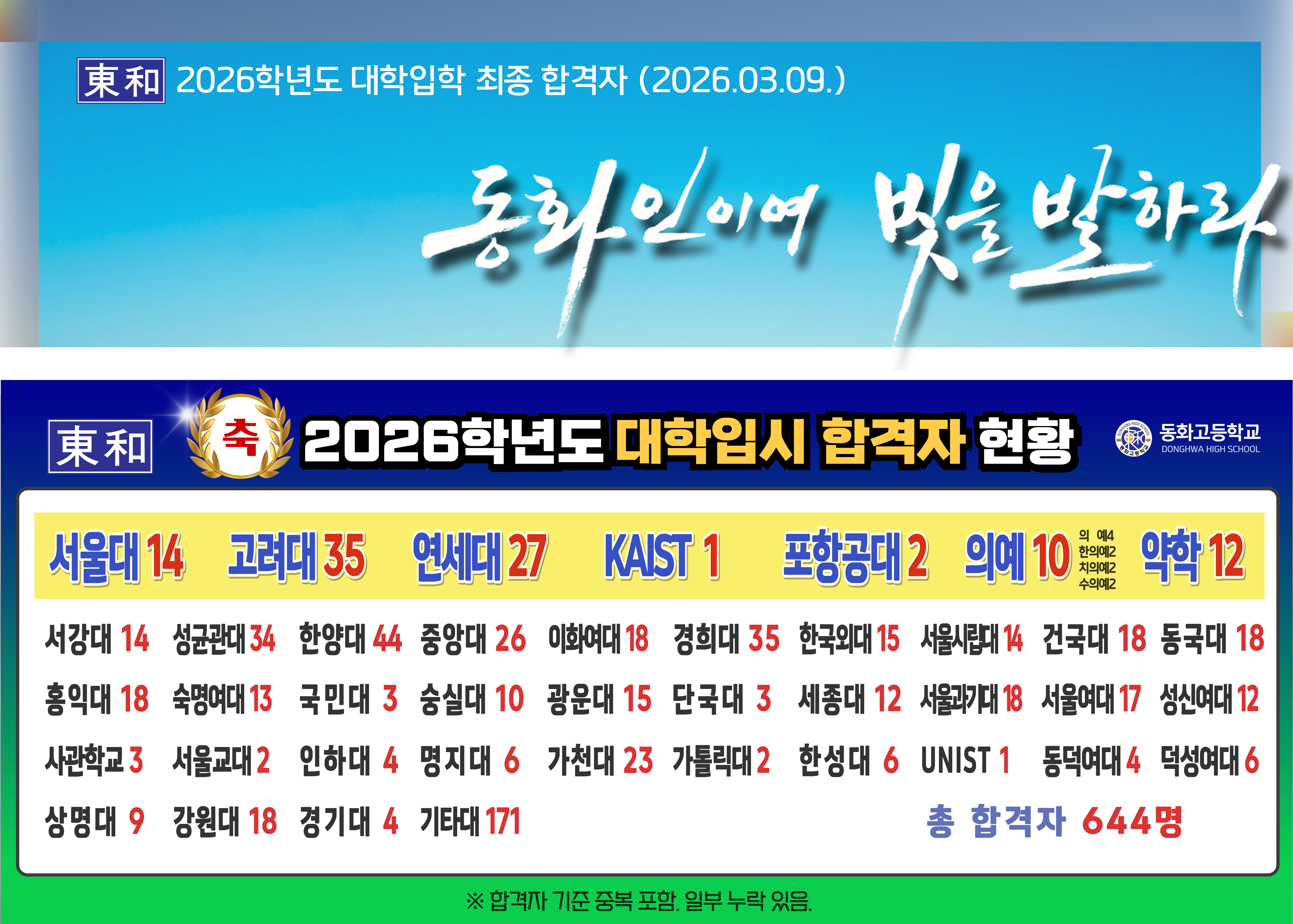 [안내] 2026학년도 대학입시 합격자 현황
