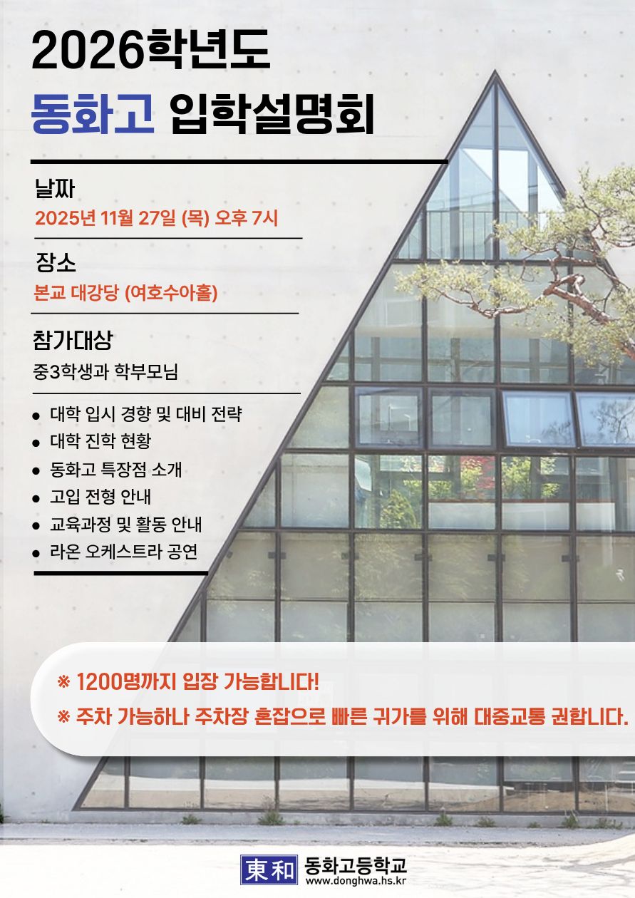 [안내] 2026학년도 신입생을 위한 입학설명회