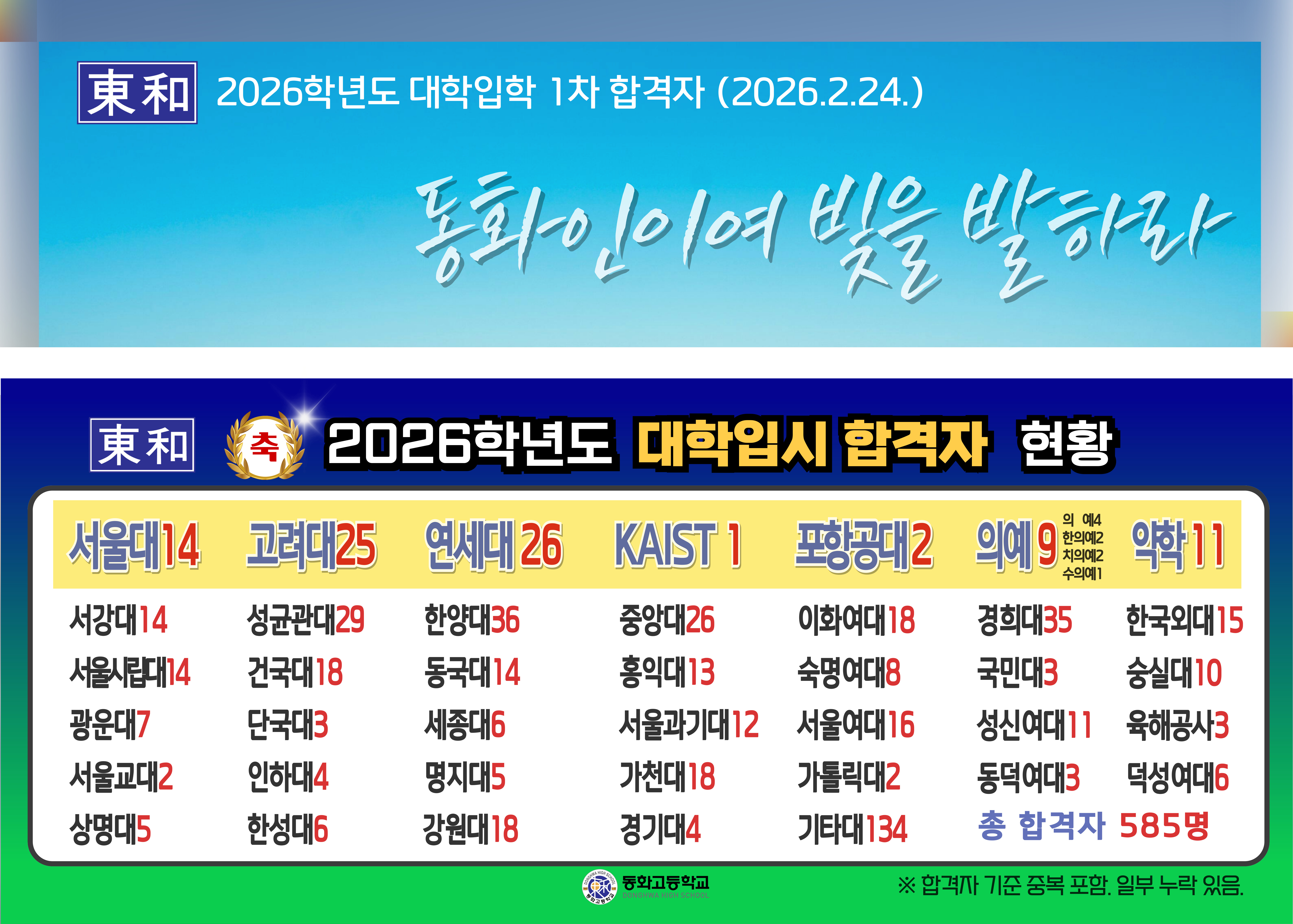 [안내] 2026학년도 대학입시 1차 합격자 현황