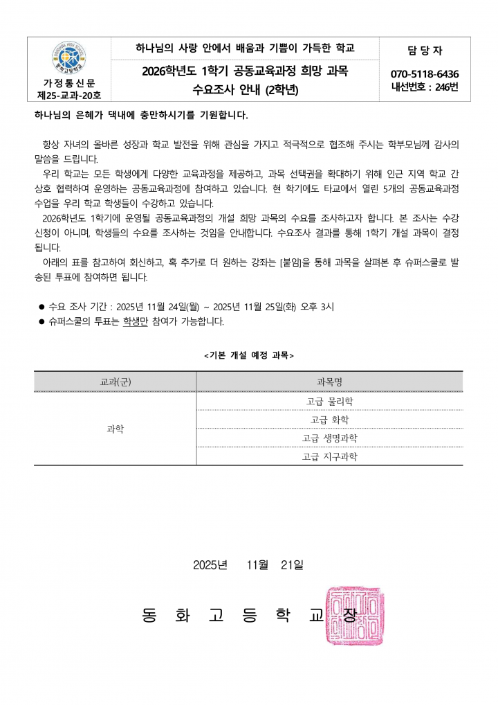 [제25-교과-20호] 2026학년도 1학기 공동교육과정 희망 과목 수요조사 안내2학년.pdf