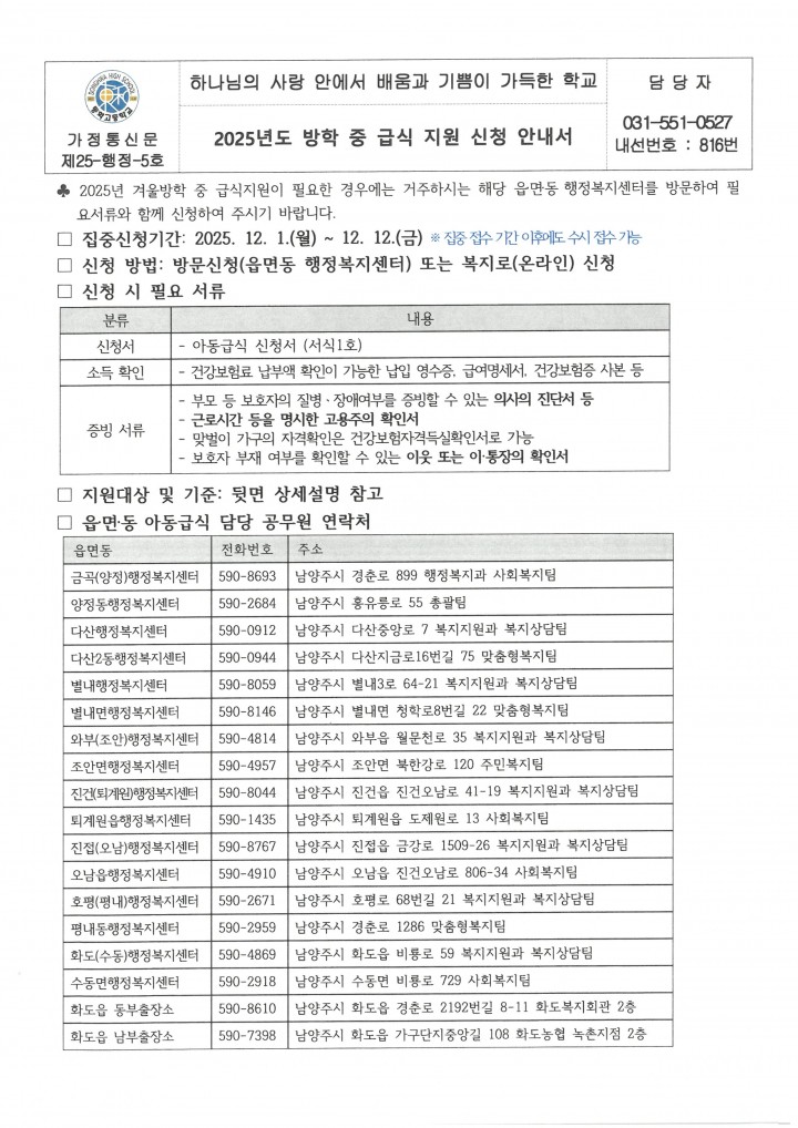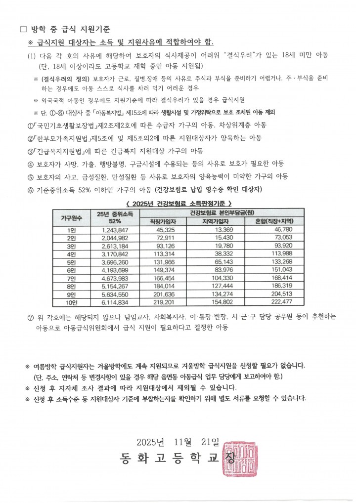 [행정실] 2025년도 방학 중 급식 지원 신청 안내서