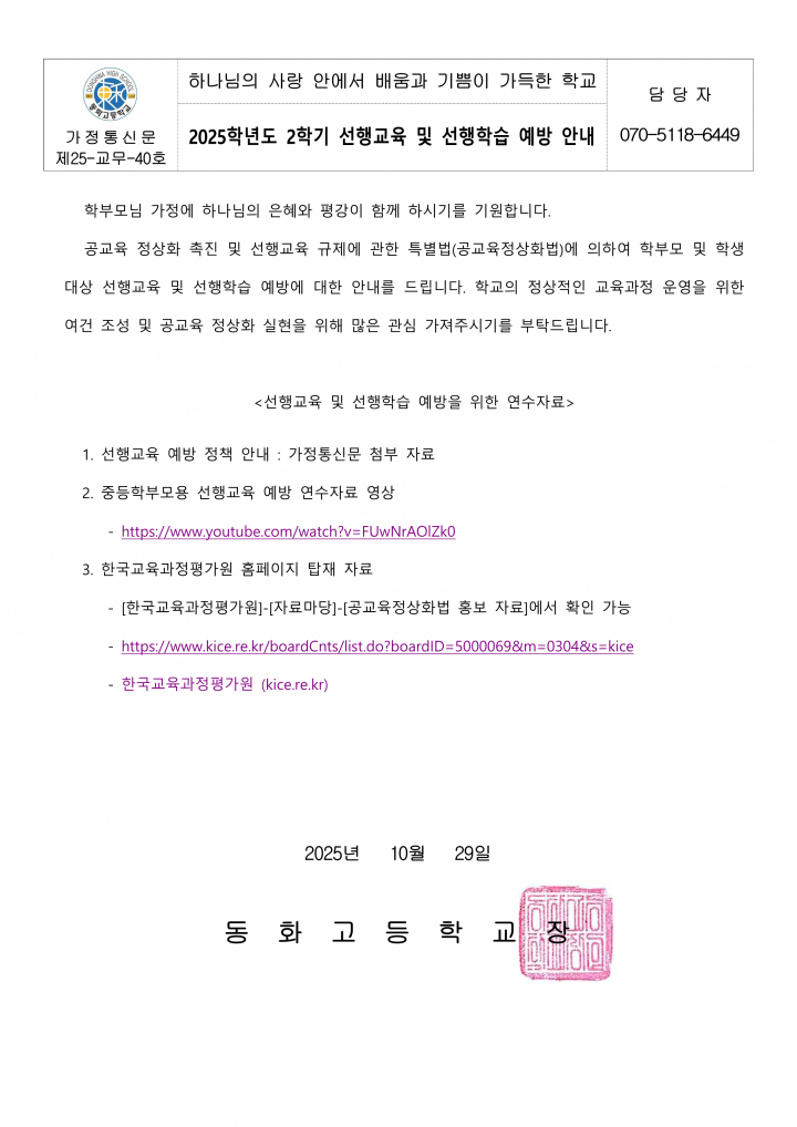 [교무부] 2025학년도 2학기 선행교육 및 선행학습 예방 안내