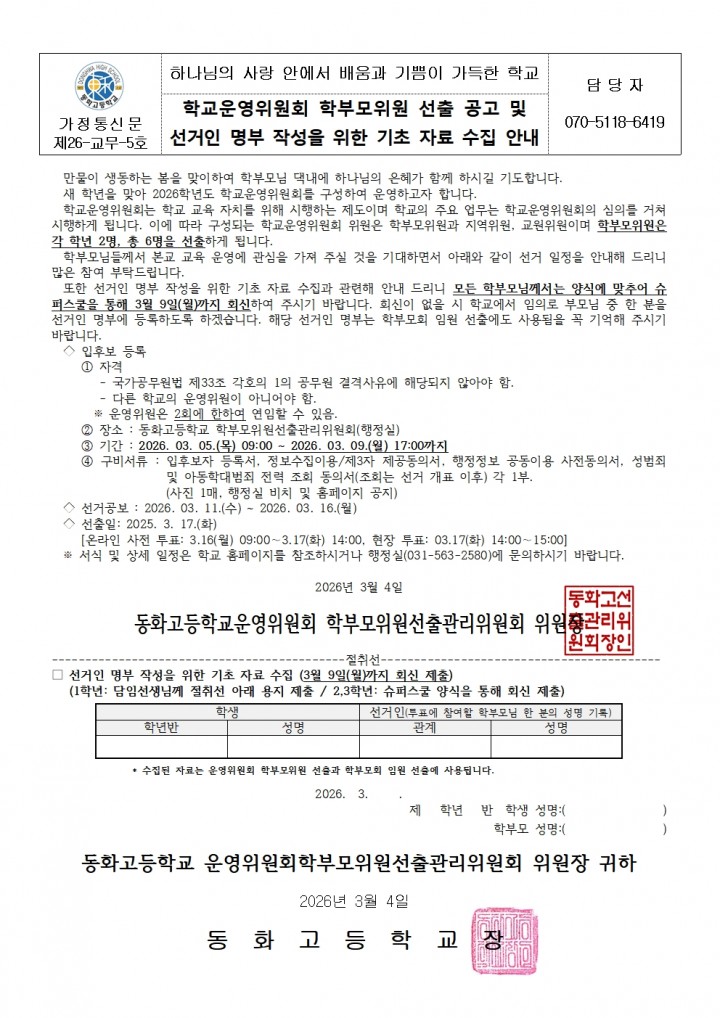 [교무부]2026학년도 학교운영위원회 학부모위원 선출 공고 및 선거인 명부 작성을 위한 기초 자료 수집 안내