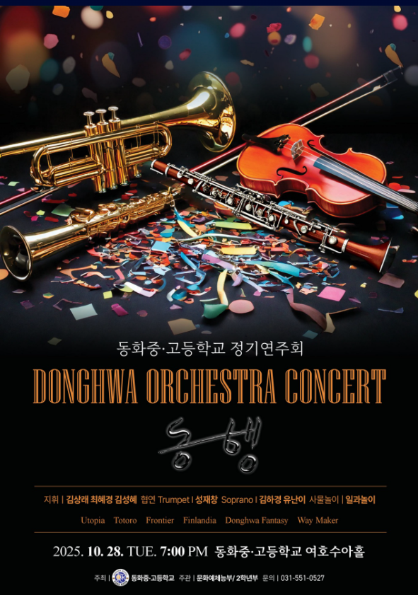 창단 10주년을 맞은 동화고등학교 라온 오케스트라와 창단 18주년을 맞은 동화중학교 윈드 오케스트라가 함께하는 2025 동화중·고등학교 정기연주회가 성황리에 개최되었습니다.