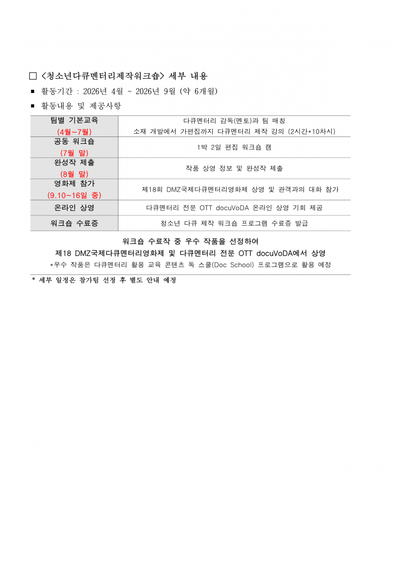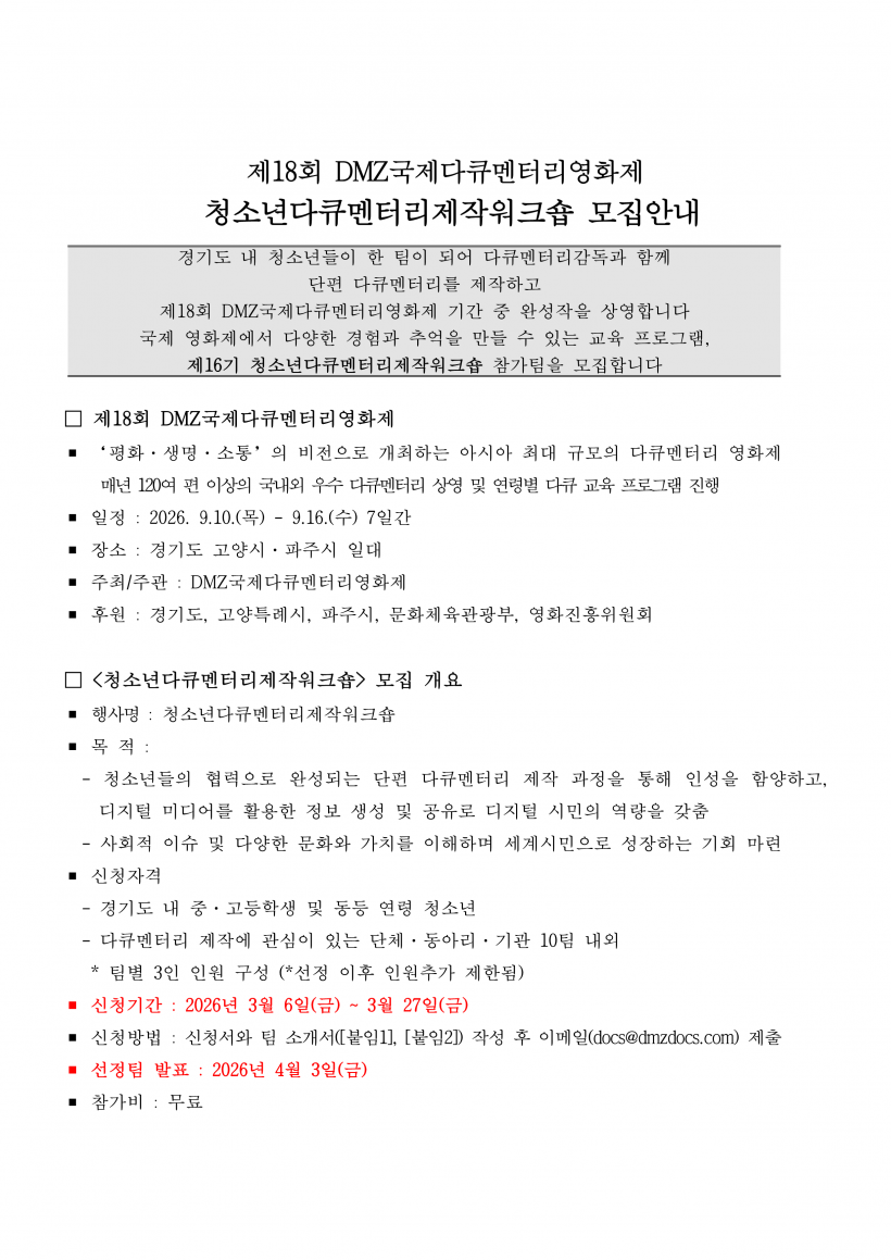 제 18회 DMZ 청소년 다큐제작워크숍 모집안내