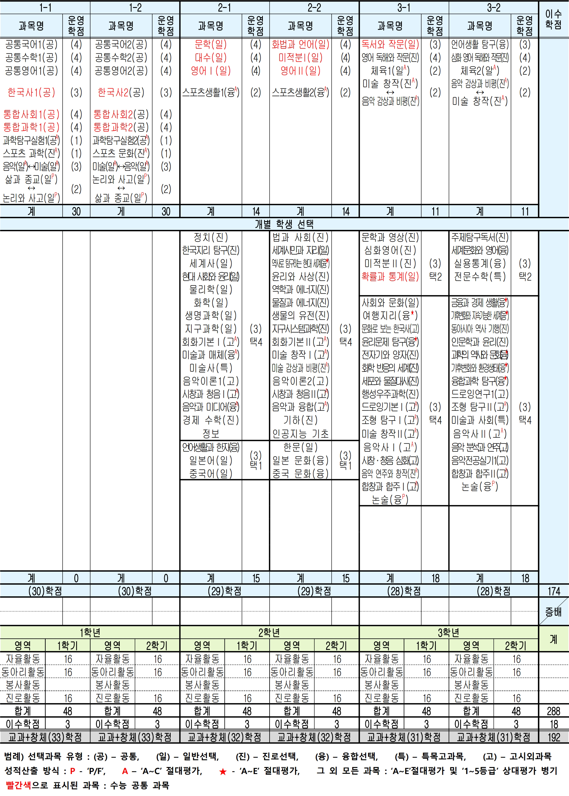 2026학년도 입학생 교육과정 편제표(자유수강제)